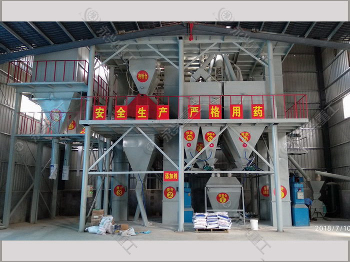 2.工藝流程由投料、配料、輸送、粉碎、提升、混合、包裝等工序組成。工藝流程連續(xù)合理,各單機(jī)性能良好,操作維護(hù)方便。